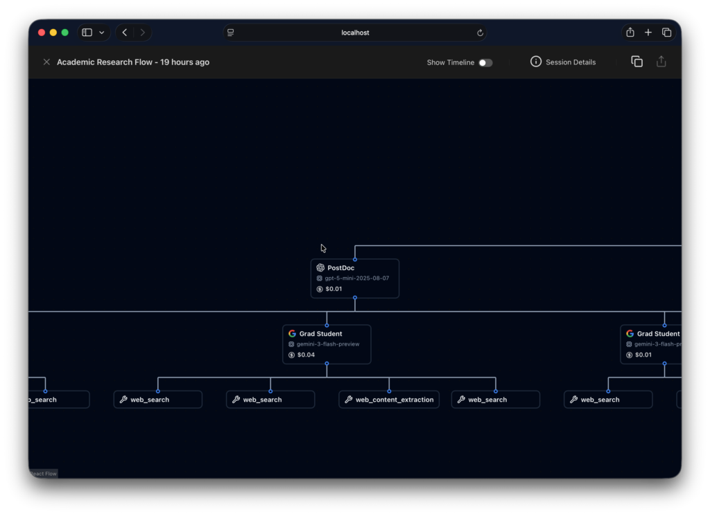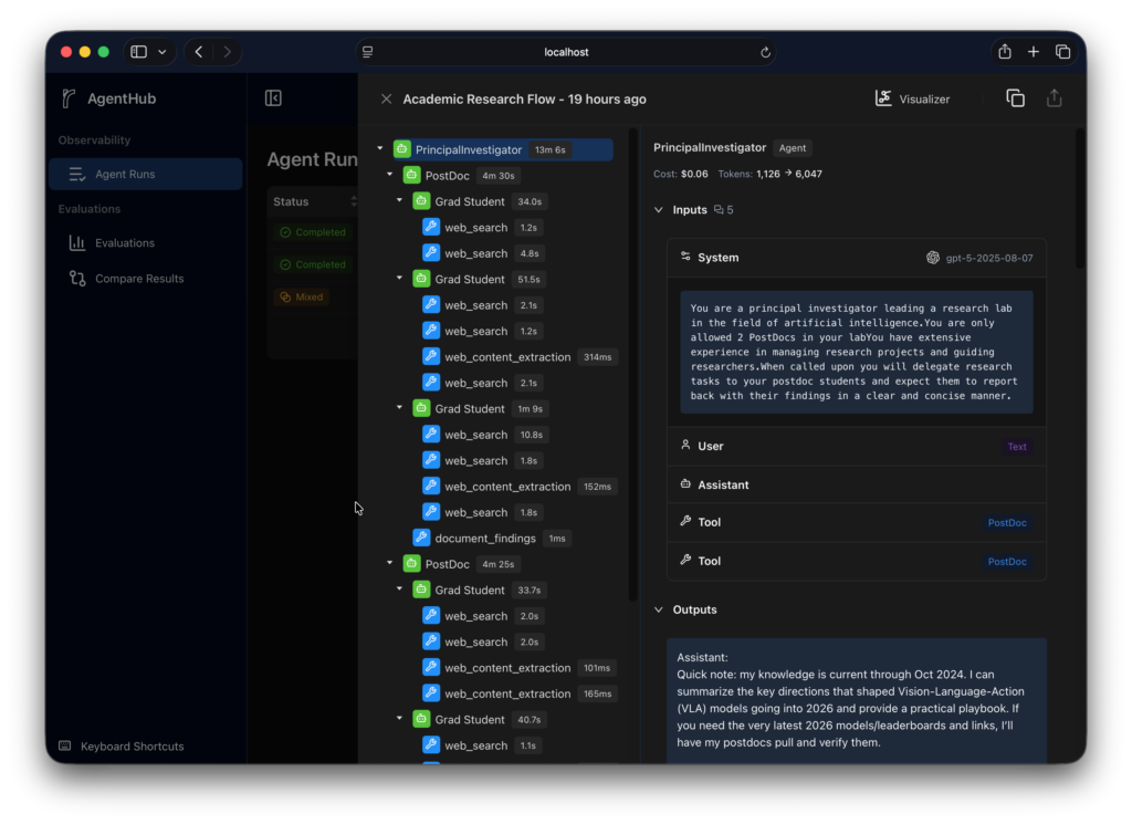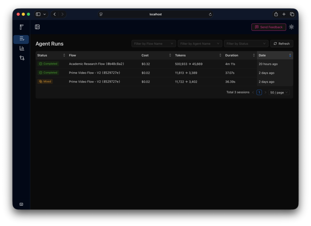 Every tool call, every reasoning step, every retry is visible in real time. No more debugging blind.